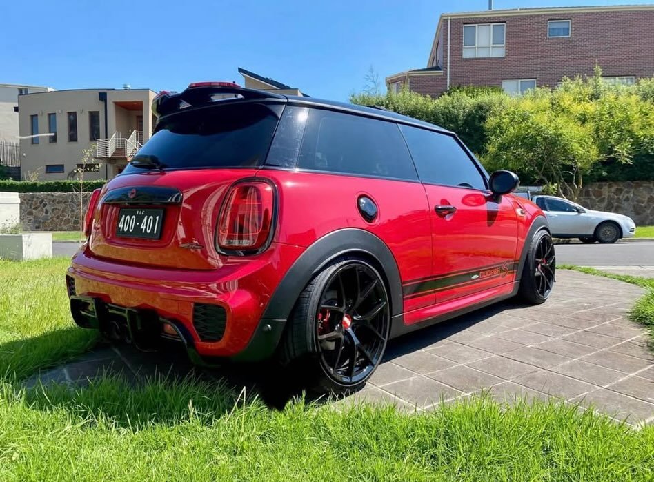 The JCW distinguishes itself from the standard Cooper S with unique exterior styling elements, including revised front and rear bumpers. The interior features sport seats and premium materials, with options for leather and other upgrades. The JCW Pro exhaust system is a notable feature, providing a deeper and more aggressive sound, especially when activated via a Bluetooth remote.
